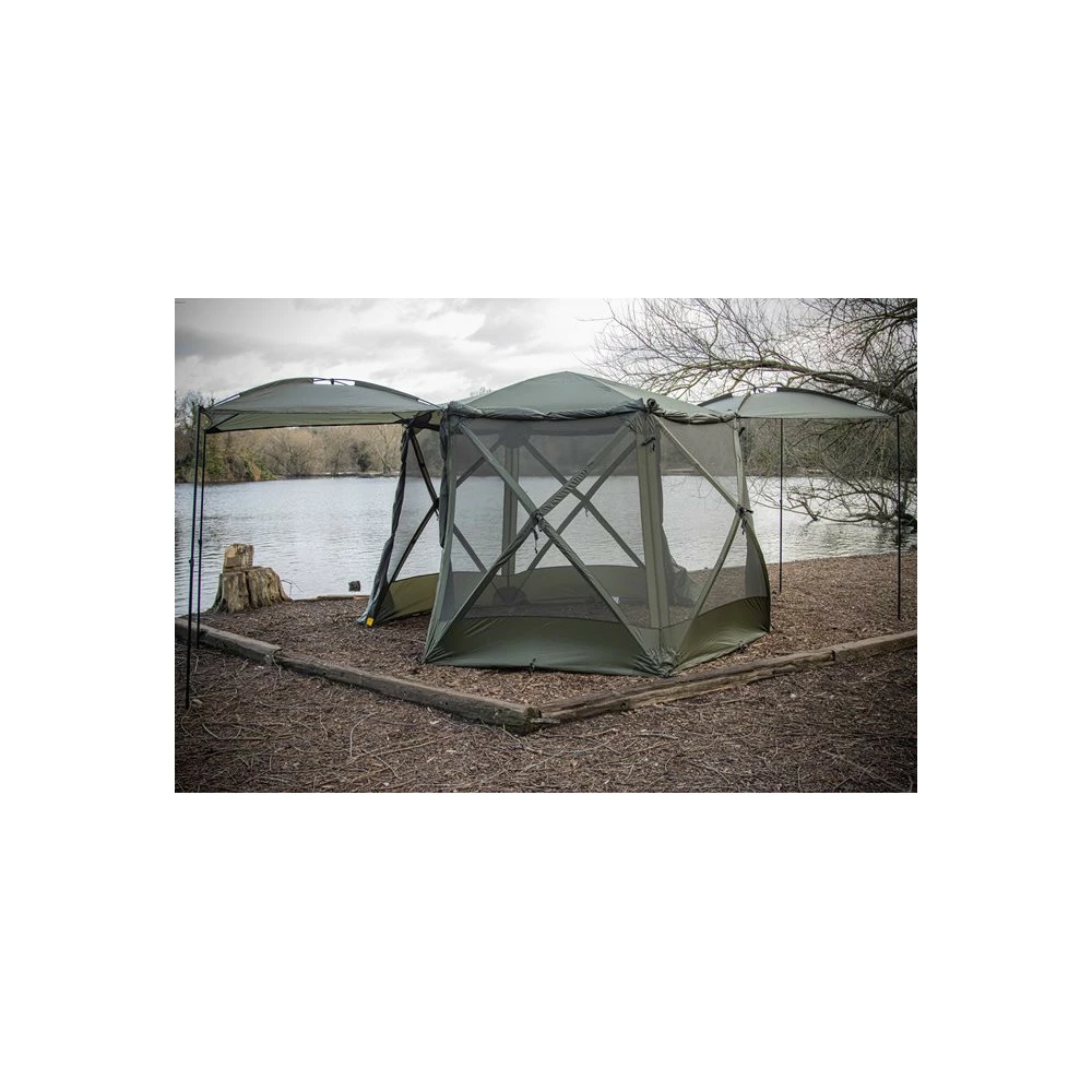 La tente sociale ultime, la tente de cuisine ou l’extension de biwy longue session. Notre nouveau Cube Shelter à 6 moyeux peut être monté (et descendu) en moins d’une minute à l’aide de notre système de moyeu Push Loc. Le grand frère de notre Cube Shelter original est haut de gamme, spacieux et confortable.
